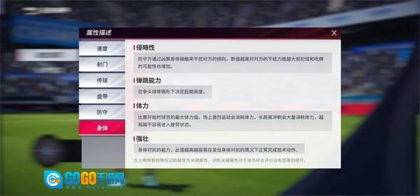 个人建议优先选择中锋,别用推荐加点,自行单独加点。中锋的话,主要加与速度、进球相关的点数,加满后,控球、冷静以及强壮也能稍微点一下。着重讲下强壮,强壮在发生身体对抗冲突时能增强抵抗能力。