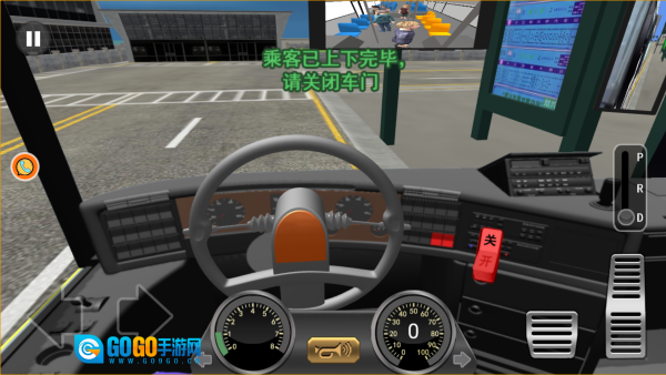 2、沿着指定路线驾驶,留意路况和信号灯,在各个站台准确停靠。等乘客全部上下车后,关闭车门,接着出发。