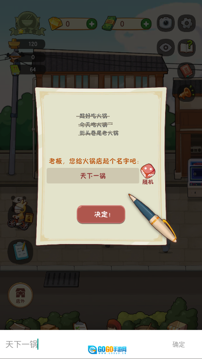 7、一切准备妥当后,玩家需为自己的火锅店取一个较为响亮的名字。