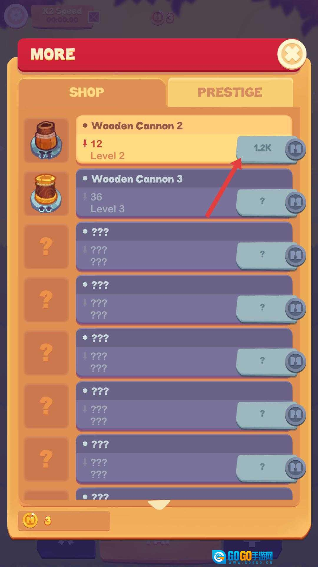 4、成功击败敌人后,就能进入商店界面。在这里,可以花费金币来升级攻击单位,比如升级木质加农炮之类的,以此提升单位的攻击力,为接下来的战斗做好准备。