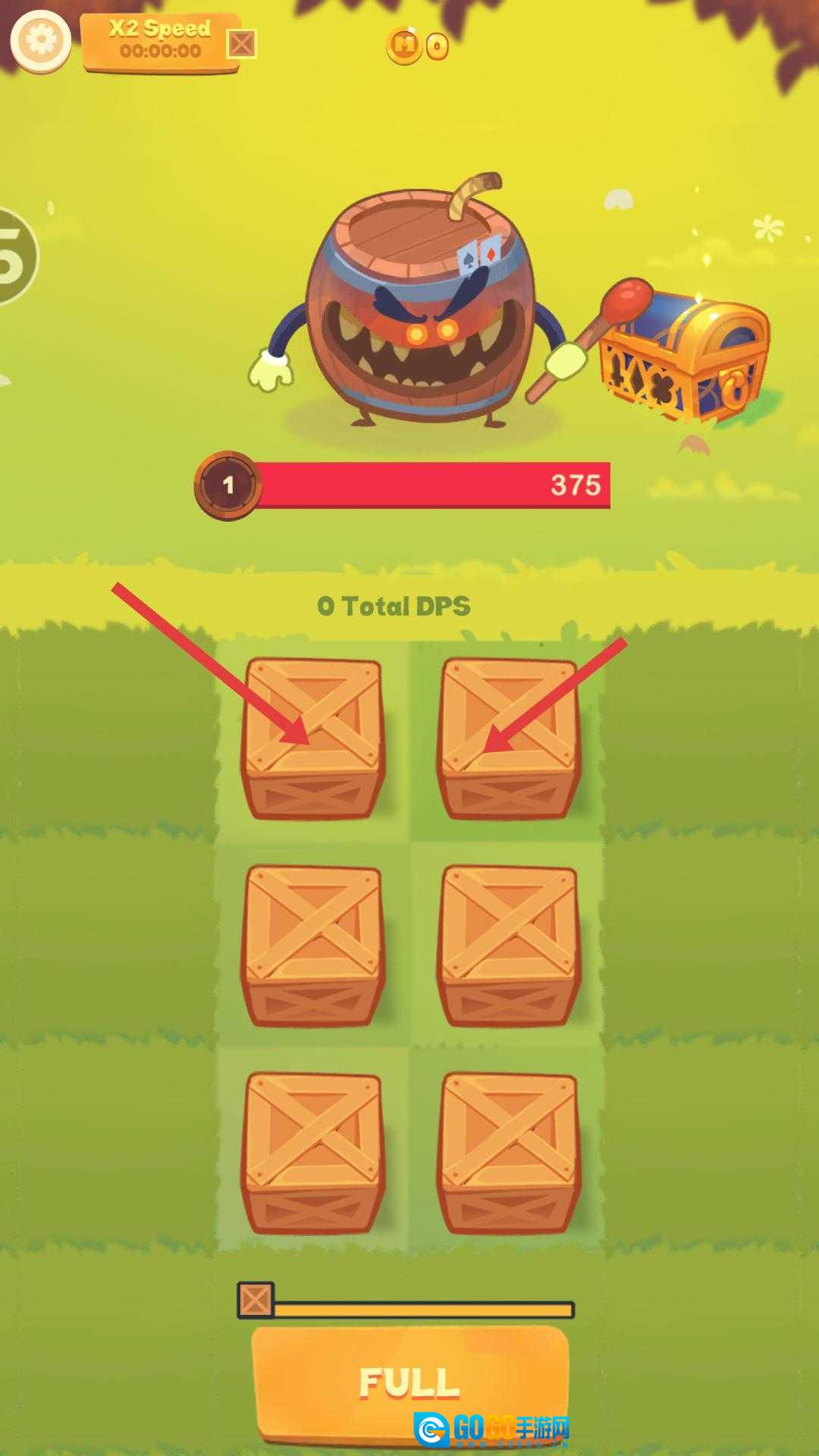 1. 游戏开始时会出现木箱,点击这些木箱,便能解锁出可用于攻击的单位。这些单位会自动对上方的木桶敌人发起攻击,从而开启战斗流程。