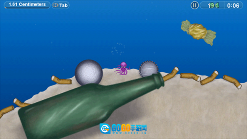 4、操控小章鱼移动去吃垃圾,所花费的时间越少,得到的评价就越高。