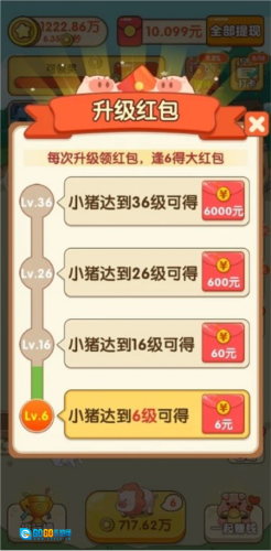 1. 玩家通过升级来解锁各类猪猪图鉴,持续提高猪猪的等级。
