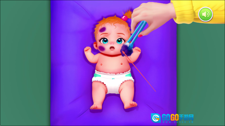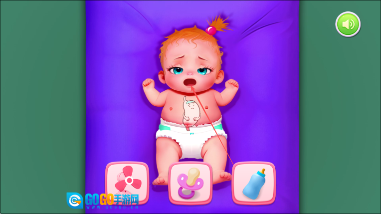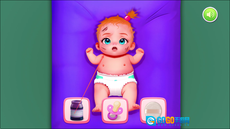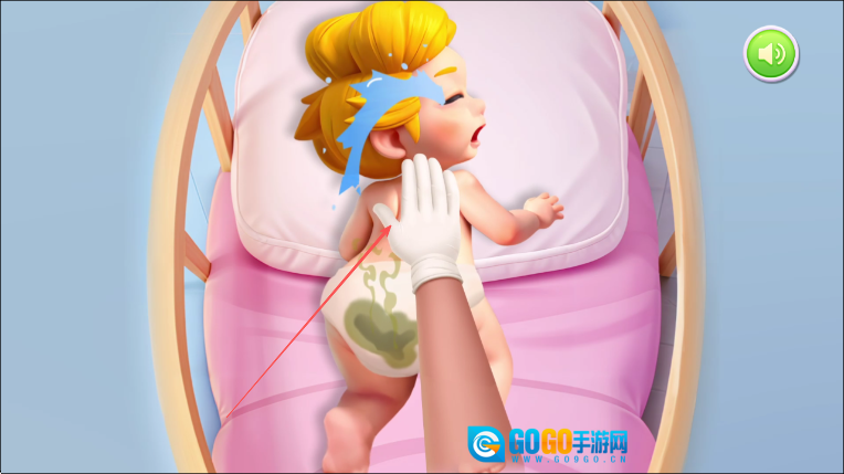1. 开启游戏后,若发现宝宝尿布脏了,依照箭头的指示,首先为宝宝更换尿布。