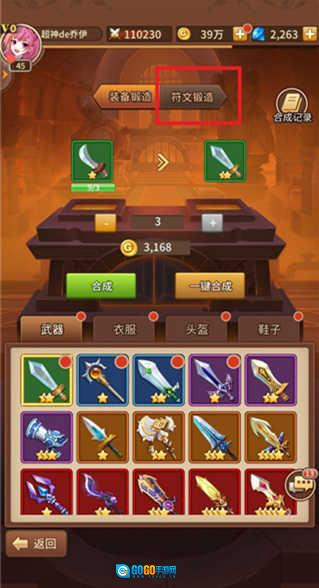 2. 来到锻造界面,其默认展示的是装备锻造,此时请选择右侧的符文锻造选项。