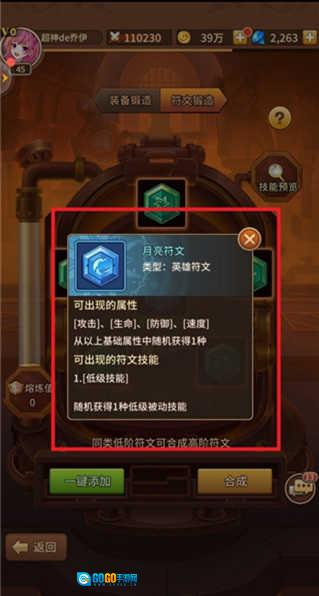 5、点击最终合成的符文图标,即可展示符文详细信息,借此能预先知晓合成的符文状况。若确认无误,直接点击合成选项就行。