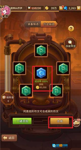 4、添加完符文后,中间会显示合成后的符文,即低等级符文合成为高等级符文。