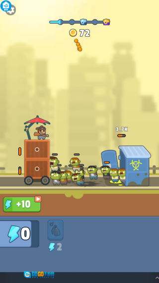 1. 进入游戏,操控角色开启冒险之旅,瞄准并射击蜂拥而至的僵尸,打败敌人,获取金币、道具等丰厚奖励。
