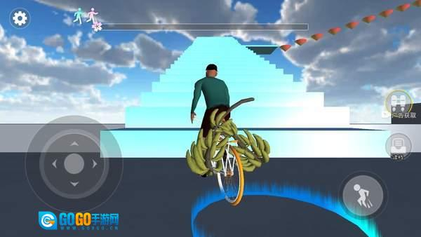 你需要操控游戏主角骑乘脚踏车,在高处把香蕉举起来,巧妙避开各种阻碍,尽力抵达最终的目的地。