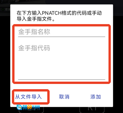 6、如需使用自定义代码,可点击【添加金手指】功能手动输入或导入本地保存的作弊代码。