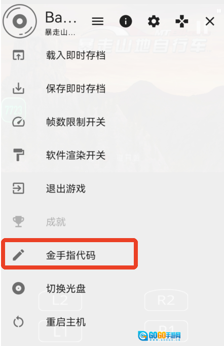 4、通过游戏界面右上角的双竖线标识进入扩展菜单,选择【金手指代码】选项管理已的修改内容。