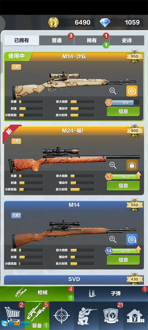 在野外狩猎的场景中,你可以尝试不同枪械的组合使用,还能搭配特殊的子弹类型,自由地为枪械加装各种配件,逐步成长为出色的狙击高手。