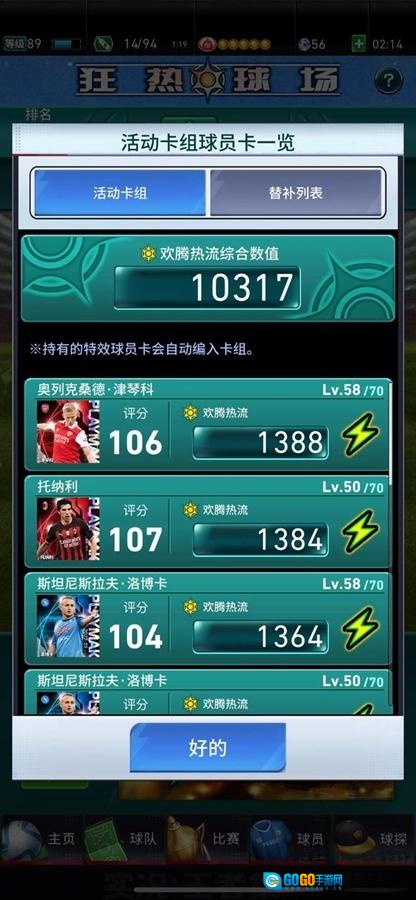 游戏会自动根据您球队里最高的分数组合来挑选参赛球员,这会对得分产生影响。