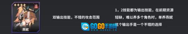 燕妮:被动最高30%装甲,核心出力倍率分别是140%与100%,加60攻击和65%暴伤