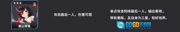 拥有2个输出技能和不错的攻击范围,前期资源不够的情况下养起来会很舒服。