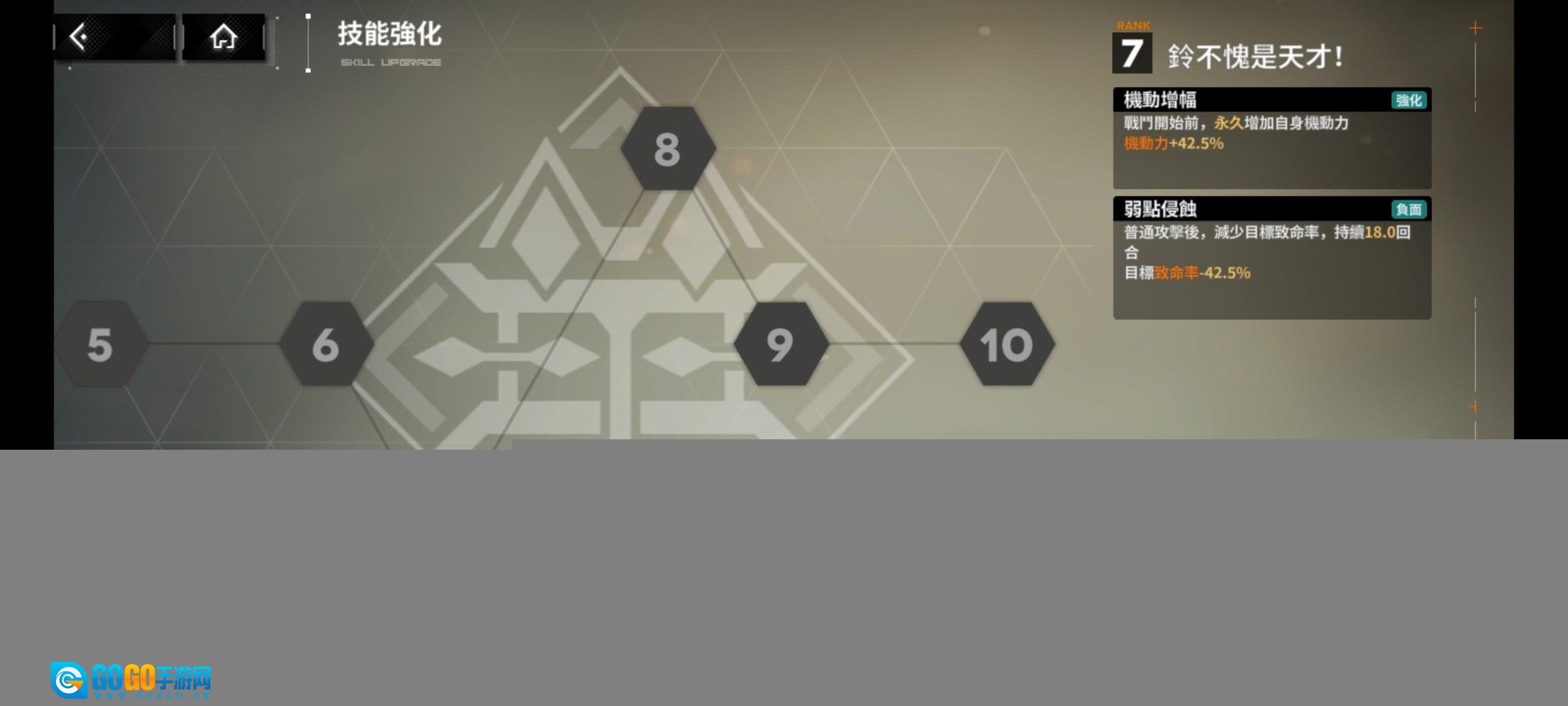 铃:被动最高42.5%机动力,核心出力倍率分别为300%与200%,加60%攻击和25.5%暴击