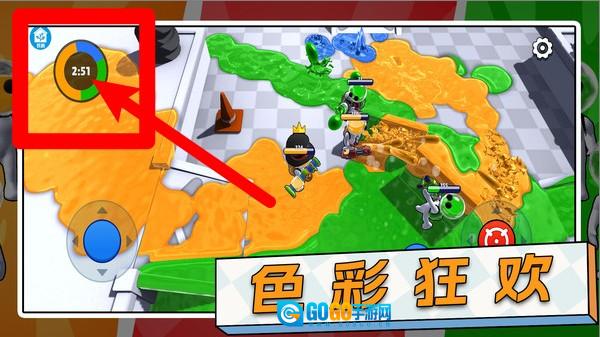 游戏界面的左上角有一个圆形计时器,它会清晰地显示当前还剩下多少时间,玩家需要在规定的时间内,尽可能快速地喷射出更多的区域。