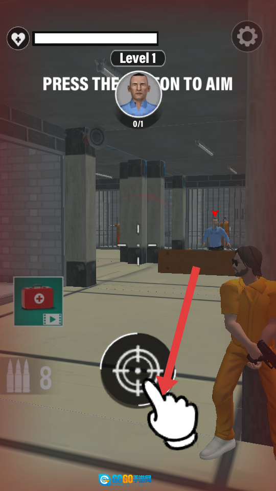 注意查看左下角显示的弹药剩余量,要是血量不够的话,就点击急救包来恢复生命值,等顺利通过这一关后,接着去熟悉操作的节奏。