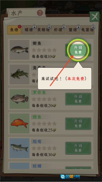 升级你鱼塘里的鱼;