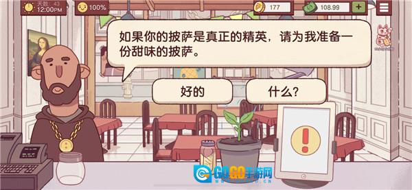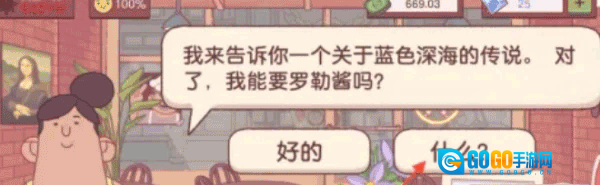首先,客人所点的“蓝色深海的传说”披萨实际就是凤尾鱼芝士披萨,若想了解更多细节,可点击“什么”按钮。