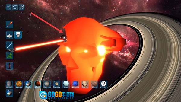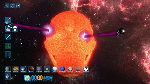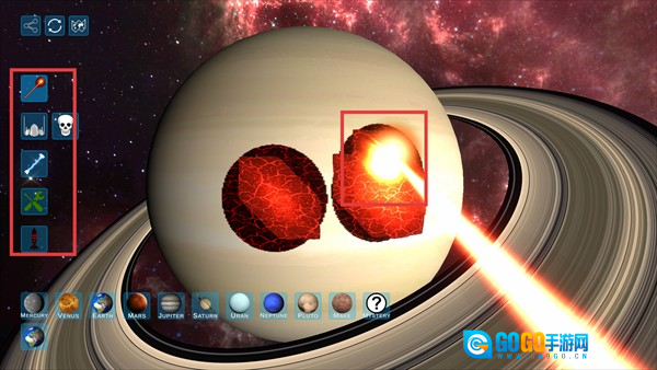 2、用左侧武器栏的攻击道具,对准行星区域发射,持续攻击可让行星出现破损效果。