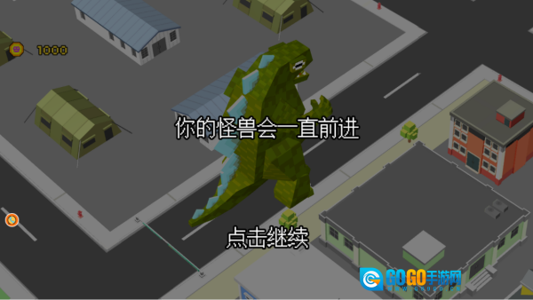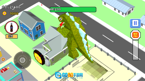 通过左侧的虚拟摇杆可以操控小怪兽的移动,你的目标是破坏更多建筑以获得更出色的分数。