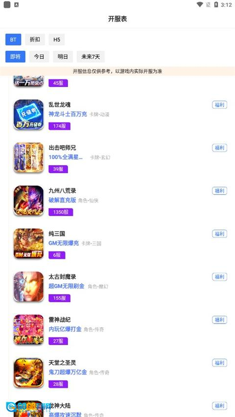 4、除此之外,这款软件里还提供了不少游戏供玩家体验,大家也可以留意开服表的信息。