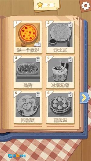 1、在主界面中,玩家只需点击食谱上的菜品,即可进入对应的关卡,开启烹饪任务。