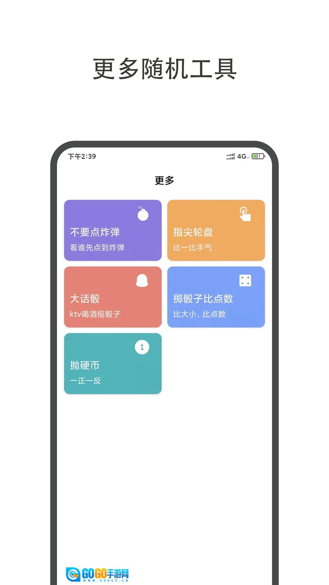 1、丰富的玩法选择:涵盖了大轮、组合轮、掷骰子、抛硬币、抛牌、指尖轮等多种决策形式,能适配用户各异的决策场景与需求。