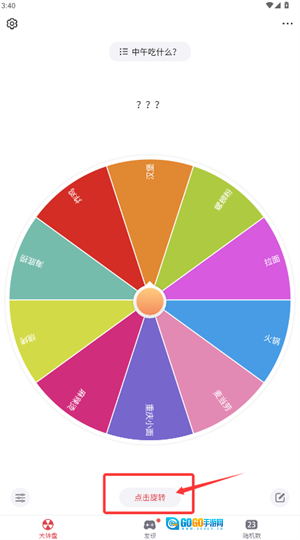2、转盘生成后,轻触底部的旋转按钮,就能启动转盘的随机选择功能。