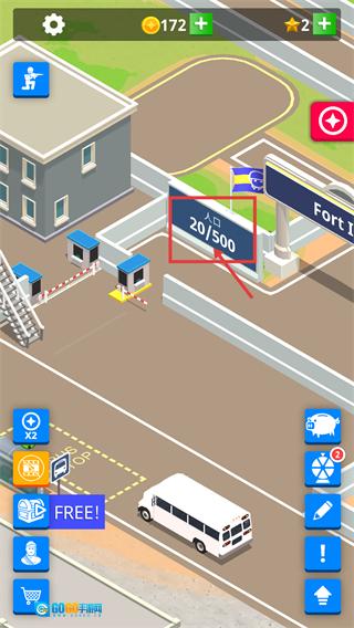 1、留意【人口-20/500】的实时数值,巴士到达【公交站】后能够继续接引新兵,与此同时关注【金币-172】的资源库存,以此支撑后续的操作。