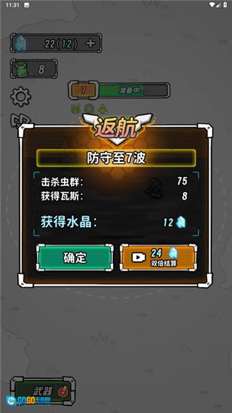 5、游戏采用自动攻击,在消灭一波敌人后可选择返航;