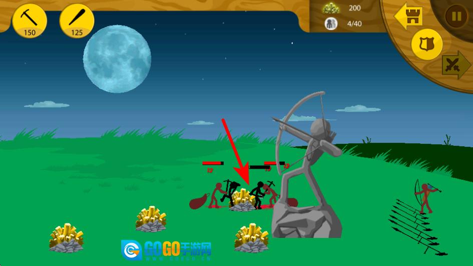 1、在资源积累足够后,点击棍棒手标识可训练该战斗单位,这些近战士兵是前期进攻与防守的核心战力,能协助矿工保护资源采集区域。