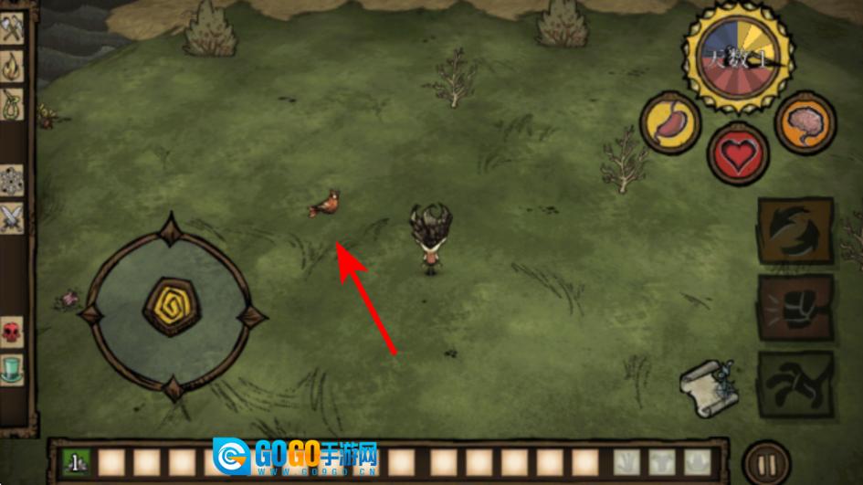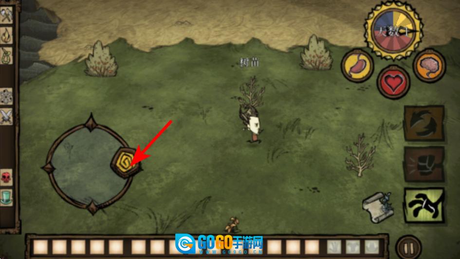 1、在游戏场景中,点击移动按钮可操控角色探索地图,这是收集资源、寻找物资基础操作,移动遍历区域获取食物、材料。