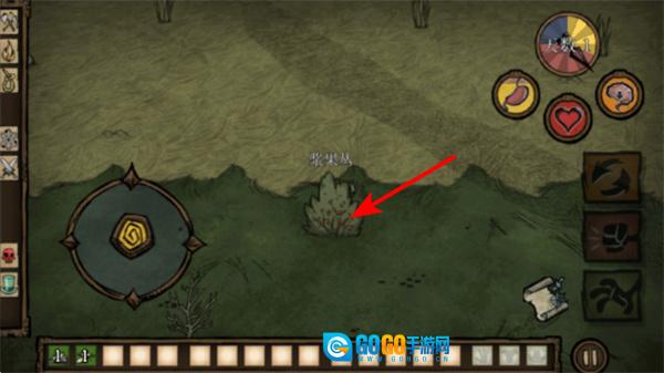 4、找到浆果丛后点击采集,可获得浆果类食物,这类物资是前期主要的饥饿补给来源,同时需注意保留种子用于后续种植。