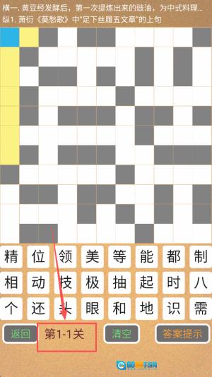 2、阅读题目:在第1-1关界面查看横一纵一提示。