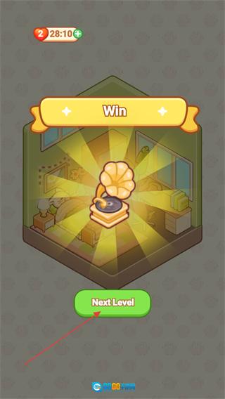 4、当关卡完成后,会出现“Win”提示并发放奖励,此时点击“NextLevel”按钮,就能进入下一个关卡继续进行游戏。