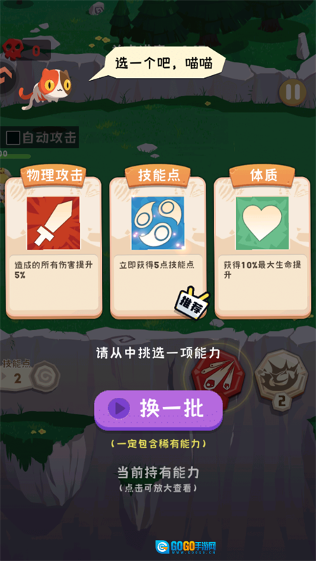 1、启动游戏后,第一步我们要挑选对应的游戏技能,按照推荐来选择即可。