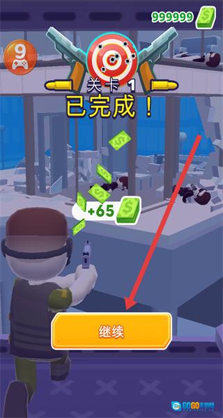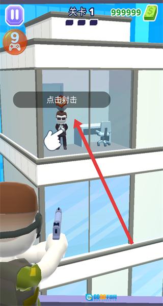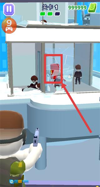 3、可以瞄准房间的汽油桶,点击射击引发爆炸,快速推进关卡进度。