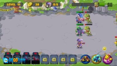 战斗阶段:僵尸会一波接一波地涌来,玩家得持续消灭僵尸来获得金币,再用金币解锁新的熊孩子或者提升现有装备的等级。