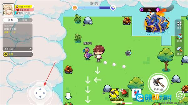 2、玩家需借助方向键操控角色移动,核心任务是收集8个龙果,过程中还能运用道具、与宠物互动,通过完成采集相关任务来推动游戏进程。