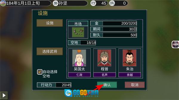 4、在设施建设界面,挑选吴国太这类武将负责领地开发,点击确认就能下达建设指令。若合理分配武将的仁政等能力,可有效提升开发效率,让领地更快成长。
