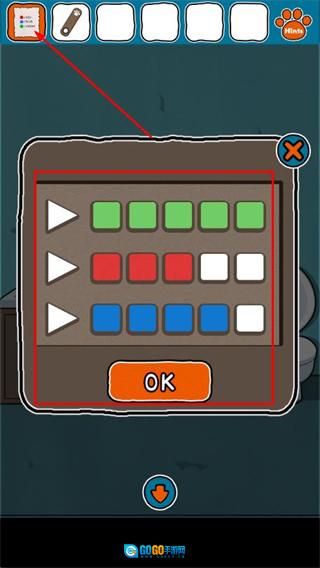 4、依据收集到的线索来调整面板颜色,完成后点击OK就能解锁机关了。