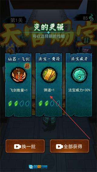 4、升级完成后,选择法宝中的黄符技能,即可获得弹道数量+1的效果,从而提升输出覆盖范围。