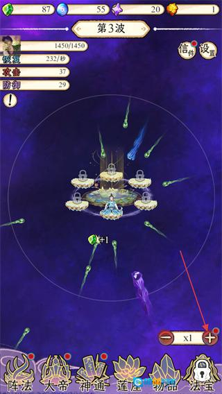 4、在第3波战斗时把倍率调整到×1.5,战斗节奏会更快,记得点击界面上邪魔被击败后掉落的蓝色本源来获取它。