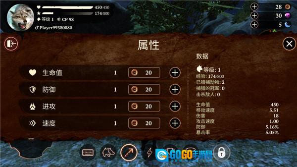 若想在狼群中登顶为王,单靠捕猎的本领可远远不够,还得在与其他狼群的对抗中证明自己的实力。为此,游戏特别设计了PVP竞技场这一玩法。在竞技场里,玩家会和其他几位玩家组成临时狼群,目标是通过猎杀野外动物和袭击其他玩家狼群来争夺优势。这里的战斗没有时间限制,族群间的交锋可以持续进行,所以如何规划进攻策略、把握撤退时机,就成了想要成为狼王的你必须思考的关键问题。