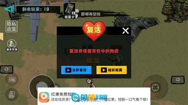 4、若撤离未能成功,还可选择通过观看广告复活,或是直接撤离。