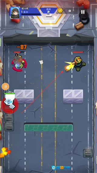 2、遭遇敌方机甲时,自动触发攻击,削减敌方血量如造成-87伤害。