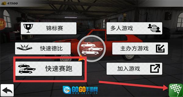 3、在模式选择界面里,挑选“快速赛跑”模式,即可进入相应的赛道比赛场景。