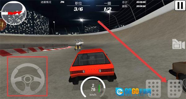 4、驾驶游玩时,可借助左侧方向盘控件调整车辆方向,利用右侧按钮控制车辆的加速与减速。